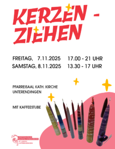 Auch in diesem Jahr dürfen wir im Pfarreisaal Unterendingen wieder das beliebte Kerzenziehen anbieten. Zu folgenden Zeiten können nach Herzenslust Kerzen gezogen werden: