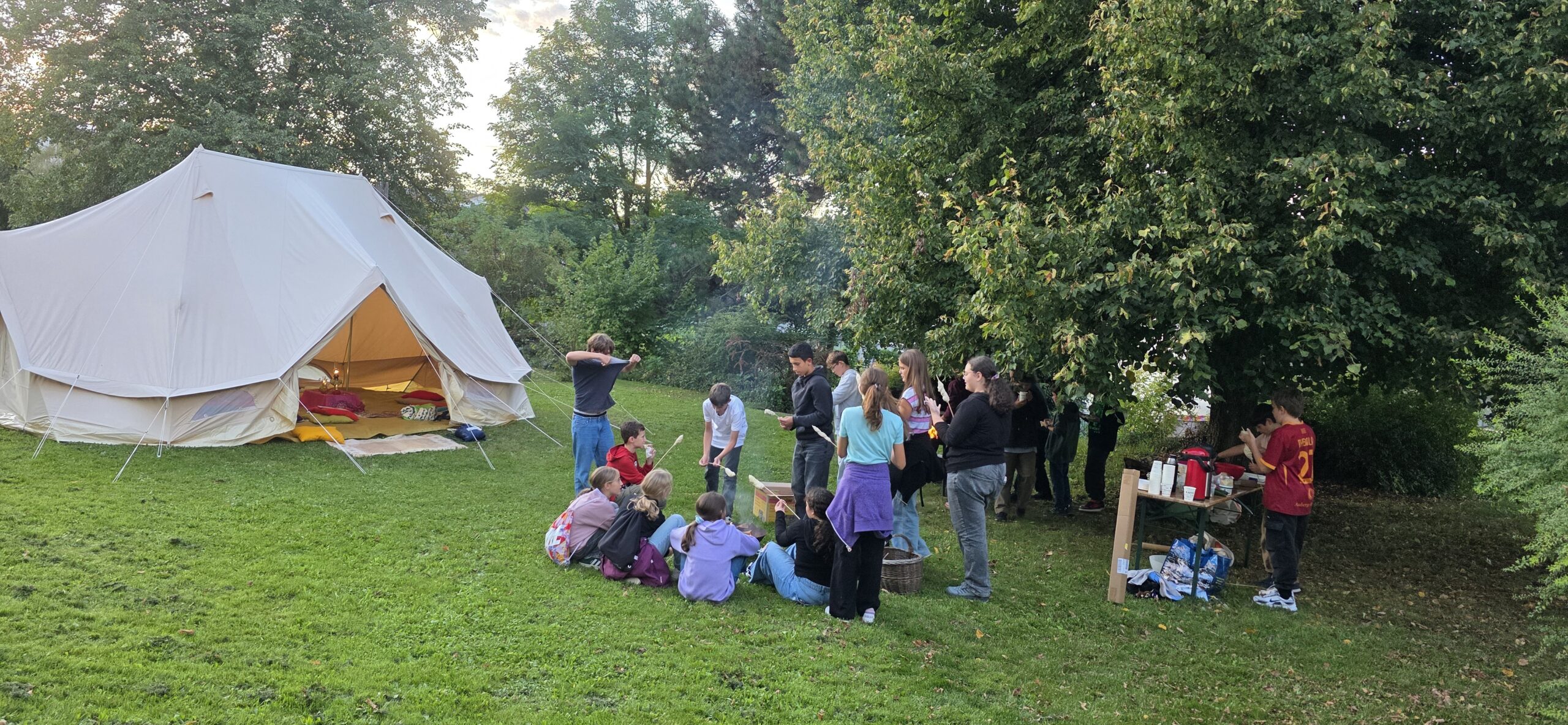 Kulinarisch wurde es mit Fladenbrot, Humus, Feta, Tomaten, Gurken und süßem Pfefferminztee. Dazu gab’s Schlangenbrot am Feuer und als Dessert (nicht ganz biblisch, aber sehr beliebt): Marshmallows!